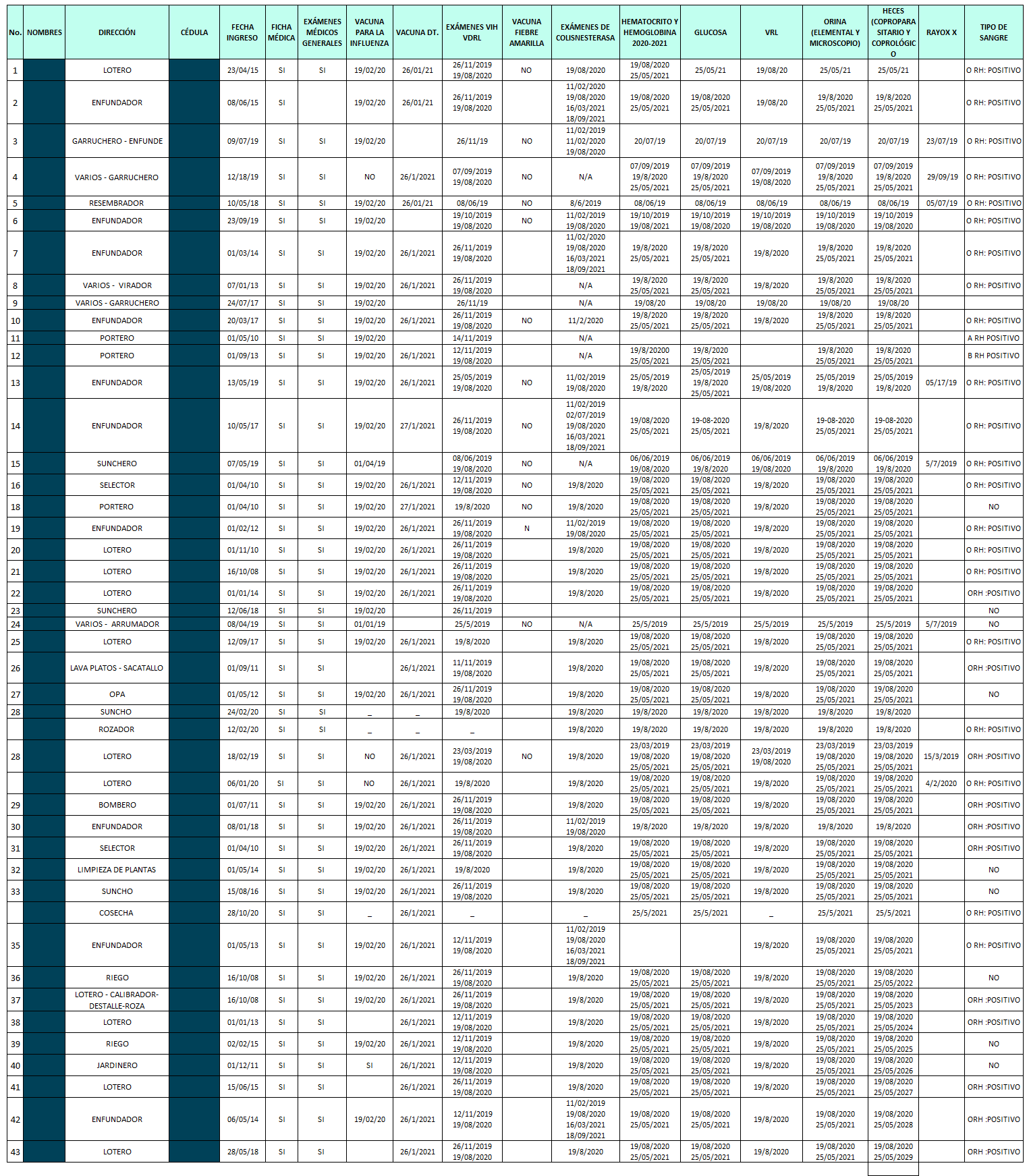Exámenes Médicos Personal Activo Campo